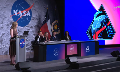 artemis II, hansenArtemis II crew on board Integrity on April 9, 2026 during live chat with several members of the US Congress. From left: Victor Glover, Christina Koch, Reid Wiseman, and Jeremy Hansen [NASA livestream]