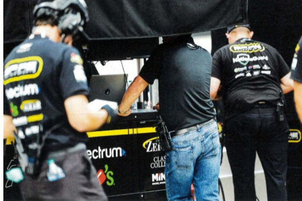 “In my experience, access to the workstation is typically limited to competition personnel with direct input into a Cup team’s on-track performance. In the photograph, Gabehart, standing with his back to the camera and wearing a black shirt and jeans, is apparently monitoring data screens. This position in close proximity is consistent with someone providing input into competition decisions. His presence at this location during Practice, as well as his specific location within the workstation, suggests to me Gabehart was likely actively participating in Spire’s competition operations for the NASCAR Cup race.”