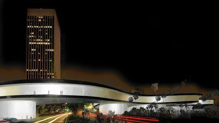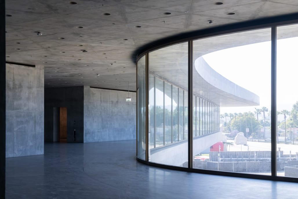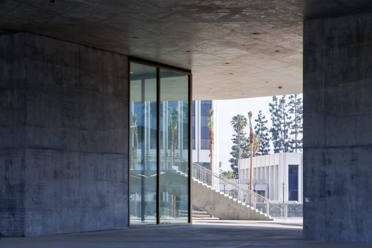 As construction reached its final stages through 2025 and 2026, Los Angeles gained an ever clearer picture of how the new building would sit within the city. In addition to the elevated main floor, defined by a long, horizontal, glass and concrete structure that curves and stretches along Hancock Park and across Wilshire Boulevard, seven semi-transparent pavilions sat at the street level.