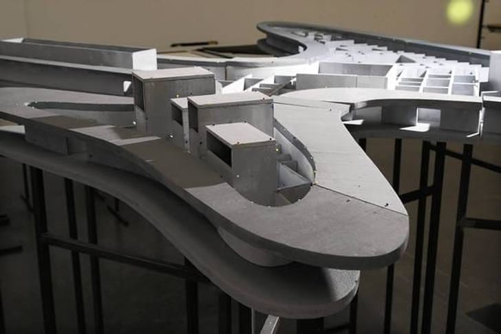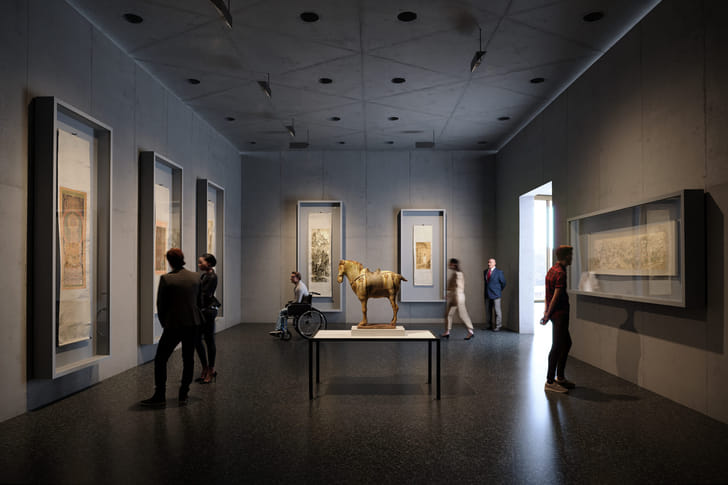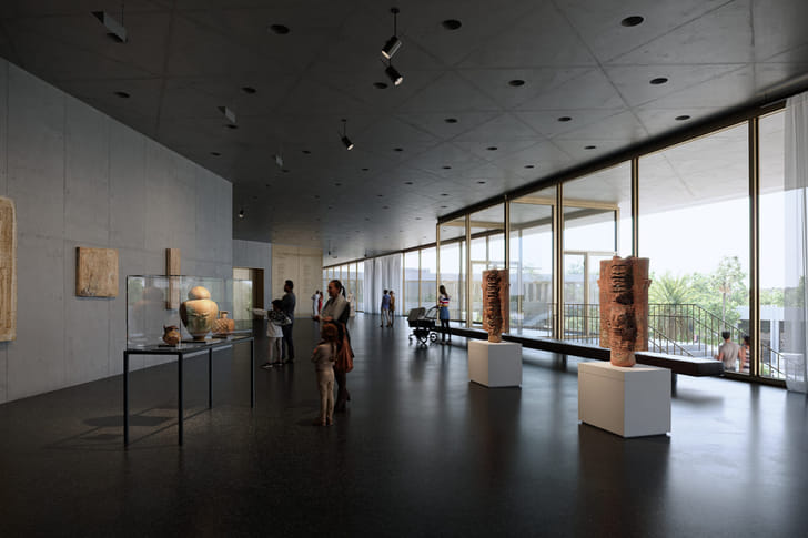 By 2017, Zumthor had overhauled not only the visual presentation of the project but the tone of the material. No longer a ‘black flower,’ the galleries would now adopt a lighter mineral tone. Two years later, meanwhile, the overall size of the scheme was reduced from approximately 390,000 to less than 350,000 square feet. The height of the building, dictated once by that array of concrete light boxes, was also reduced as galleries were removed.