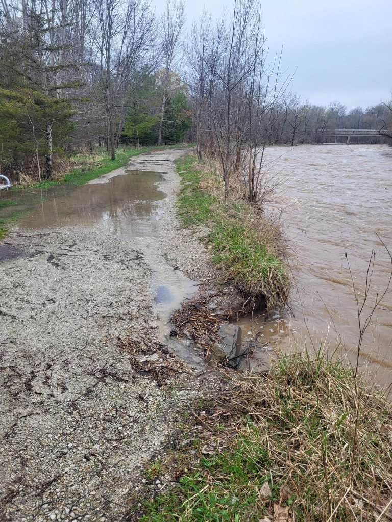“People are warned to stay away from all watercourses and to keep children and pets away (too),” CVC’s latest flood watch statement, to remain in effect until end of day Friday, added. “Soil in the watershed is currently saturated and water levels of the Credit River and major tributaries are elevated and continue to rise.”