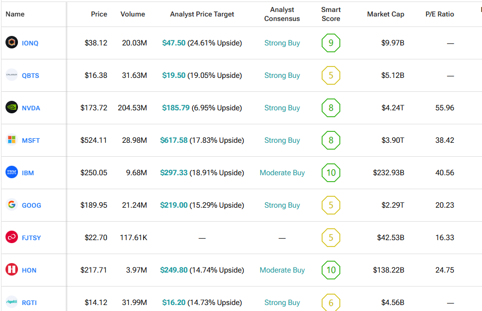 We used the TipRanks’ Comparison Tool to line up some of the top quantum stocks with a few names mentioned in this piece. It’s an easy way to see how they compare and get a feel for where the space might be going.