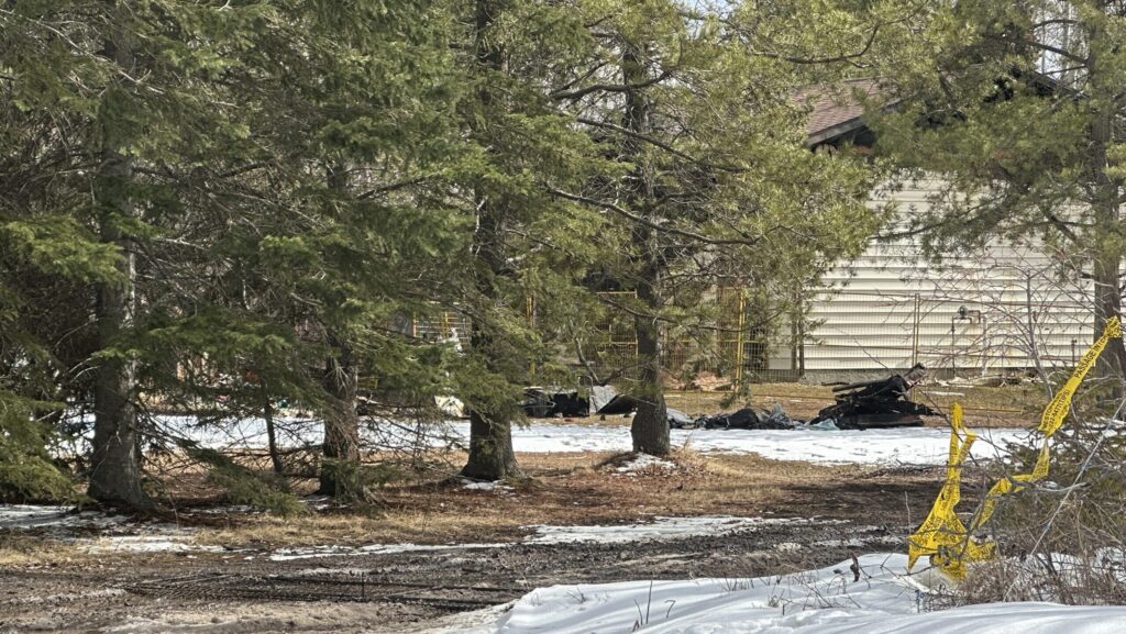 A fire at a home in Brazeau County, Alberta on Apr. 16, 2026 left a baby dead and a toddler missing. Burnt items can be seen on the ground next to the home the day after the fatal fire. (CityNews/Zach Dafoe)