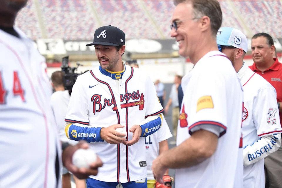 NASCAR’s Chase Elliott at a press conference announcing a game between the Atlanta Braves and the Cincinnati Reds in Bristol Motor Speedway, at Bristol Motor Speedway in Bristol, Tenn., Friday, Aug. 9, 2024.
