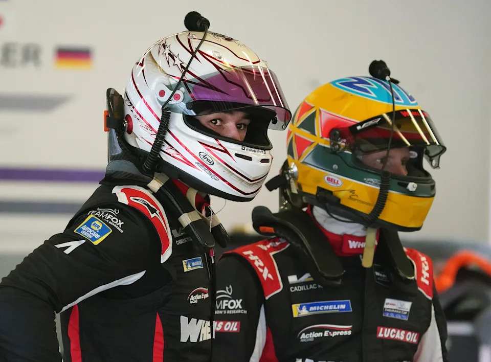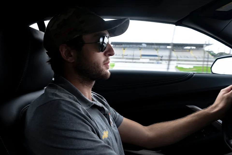 NASCAR Champion Chase Elliott practices driver changes along with his teammates during Roar Before the 24 practice at Daytona International Speedway, Friday, Jan. 22, 2021.