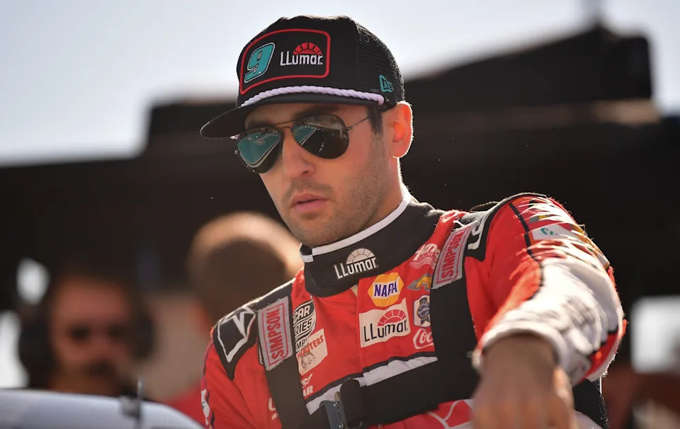 Sep 3, 2023; Darlington, South Carolina, USA; NASCAR Cup Series driver Chase Elliott (9) on pit road prior to the NASCAR Cook Out Southern 500 at Darlington Raceway. Mandatory Credit: David Yeazell-USA TODAY Sports