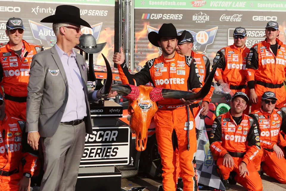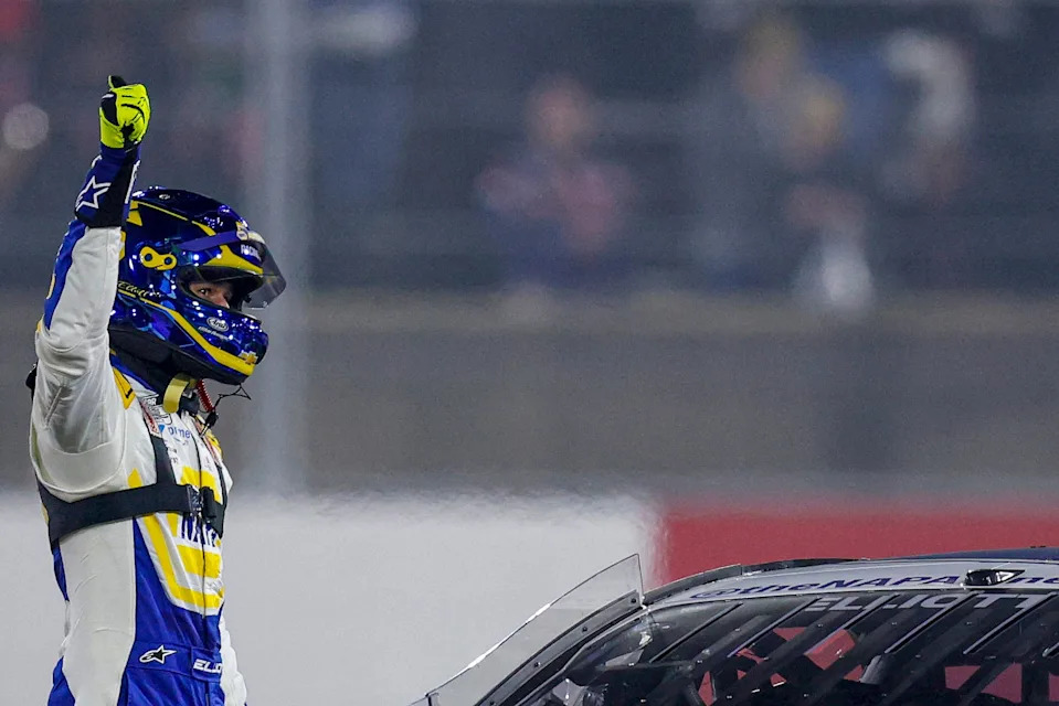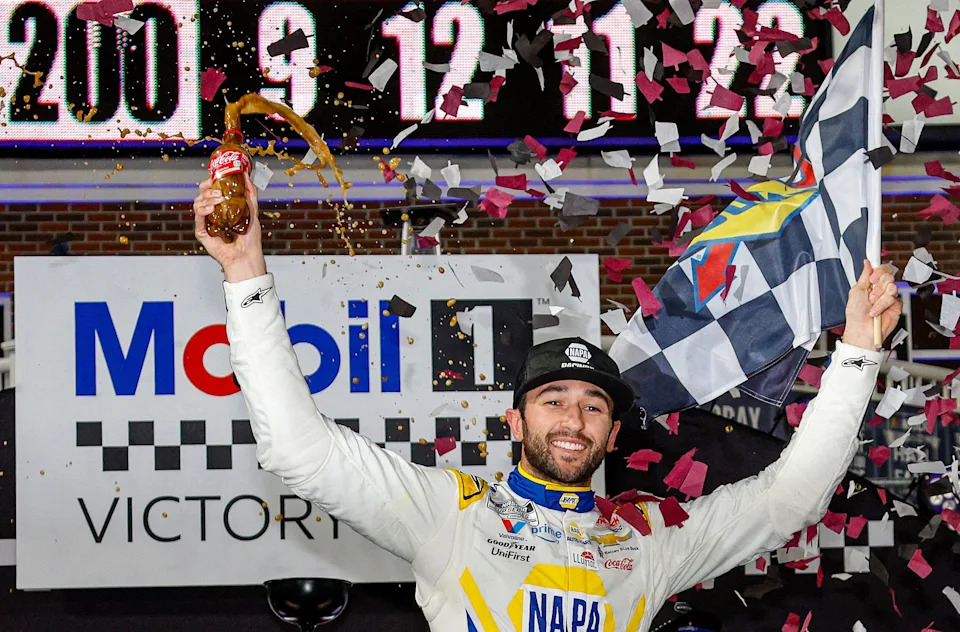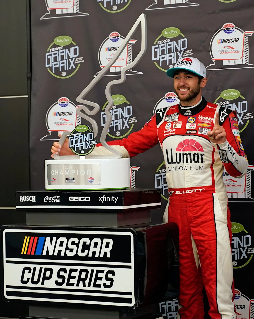 May 23: Chase Elliott celebrates after winning the EchoPark Texas Grand Prix at Circuit of the Americas in Austin, Texas.