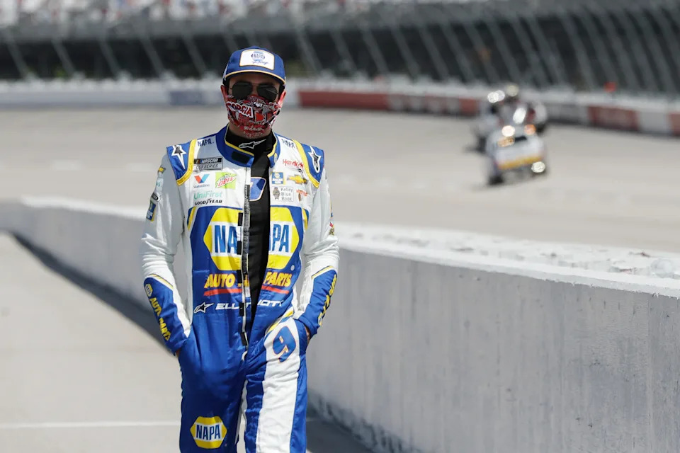 May 17, 2020, Darlington, SC, USA; Driver Chase Elliott walks to his car for the start of the NASCAR Cup Series auto race.