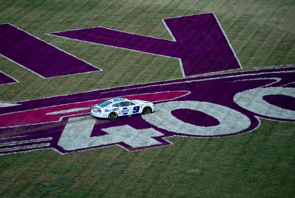 NASCAR Cup Series driver Chase Elliott (9) runs off the track during the Ally 400 at Nashville Superspeedway in Lebanon, Tenn., Sunday, June 30, 2024.