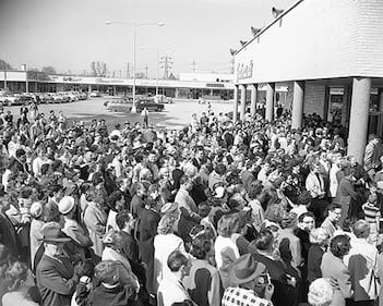 Westgate Shopping Centre’s first days Opening day crowds in front of Freimans. Westgate Shopping Centre, Ottawa’s first shopping mall, opened in 1955, is closing and will be torn down. (City of Ottawa Archives)