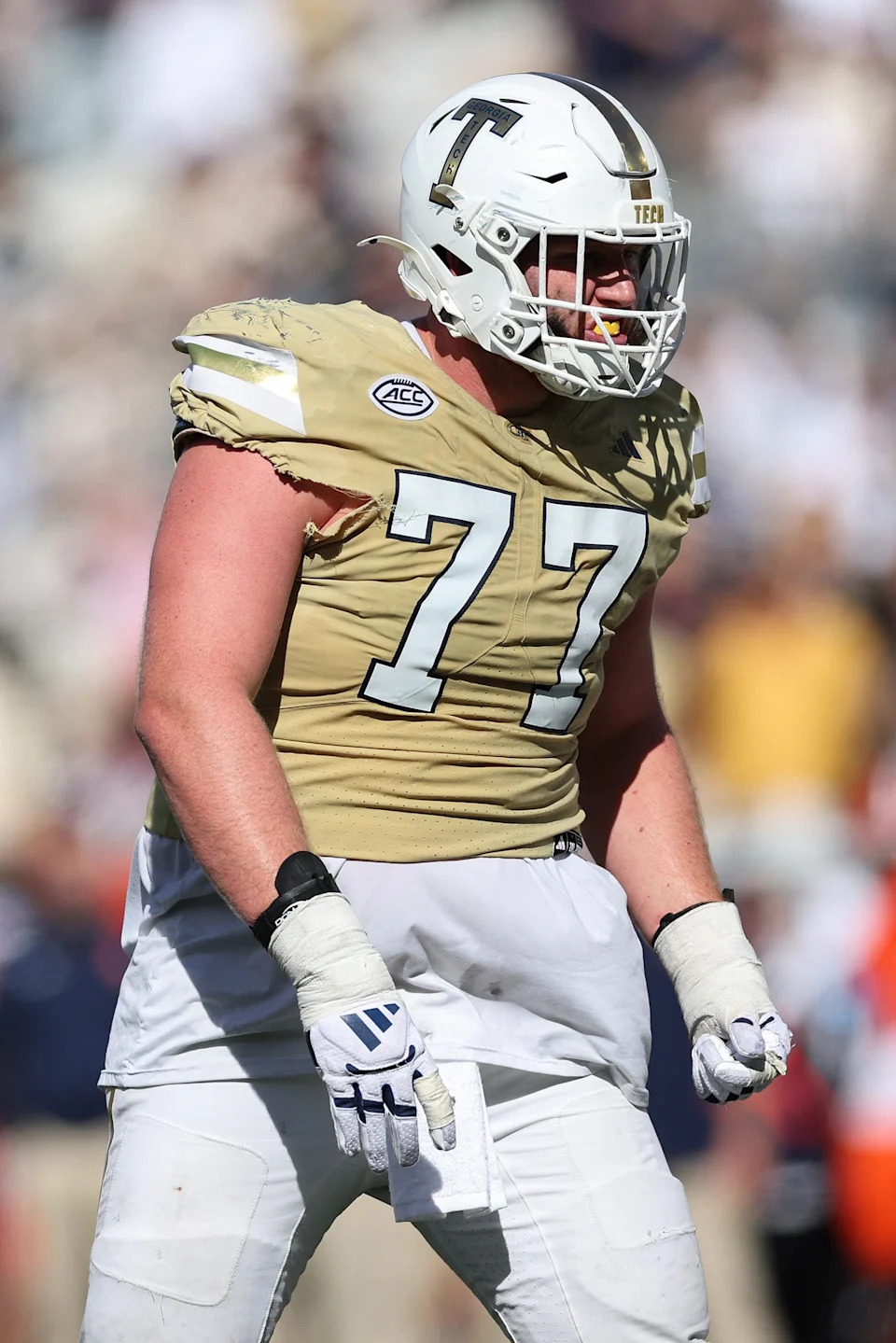 Solid to the core, the former five-star recruit holds his ground against the pass and forces opposing linemen out of the way with his strong first contact. But while there’s not much mystery to the 6-6, 329-pounder’s play, there are several unknowns about his projection. A move inside could be in his future to safeguard against concerns that he’ll be beaten by rangy edge rushers, but the skill set is there to hang at right tackle.