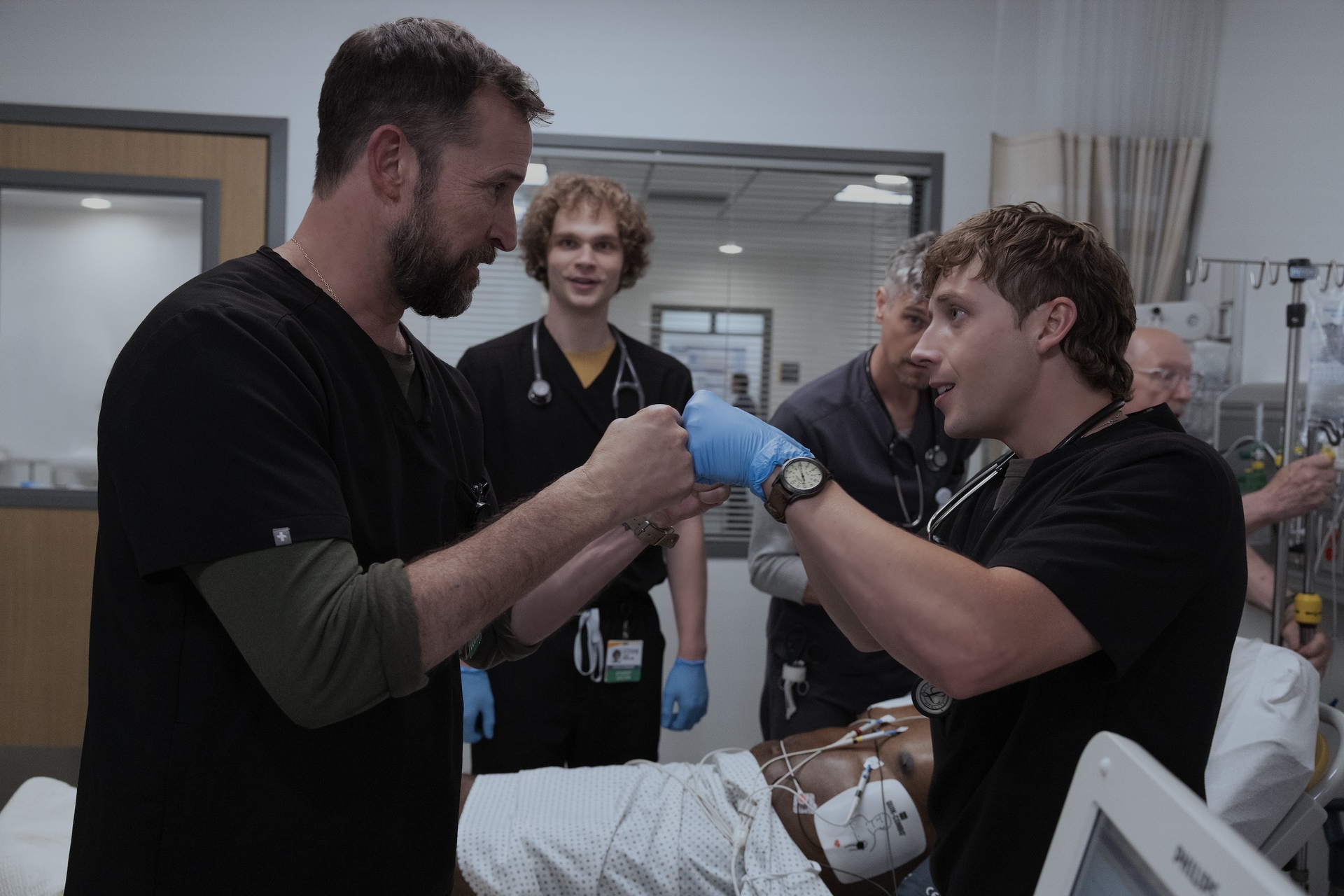 Robby opens up to Duke; Medics bringing in Rita Wolcott. (Warrick Page/HBOMAX)Noah WyleWarrick Page/HBO Max