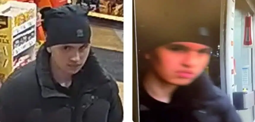 The suspect, pictured below, is described as a male with a fair complexion, in his late teens to early 20s, with a slim build, clean-shaven and with dark eyes. He was last seen wearing a black toque, black puffer jacket, black jeans and black Nike Air Force shoes.