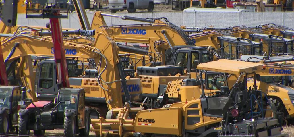 XCMG construction equipment at the company’s Canadian headquarters in Edmonton, April 21, 2026. (CityNews)