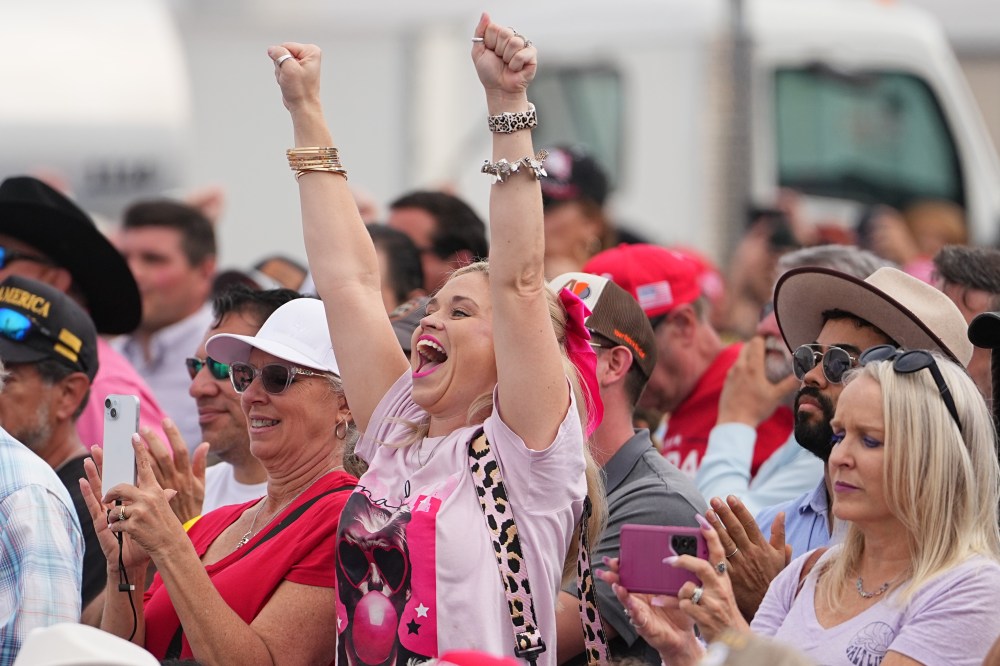 People cheer as President Donald Trump speaks at the Port of Corpus Christi in Corpus Christi, Texas on Friday, Feb. 27, 2026. (AP Photo/Matt Rourke)