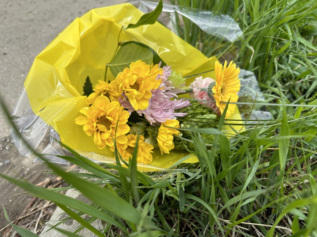 Flowers at the scene in St. Albert where a 15-year-old was killed on May 21, 2024. (Laura Krause, CityNews)