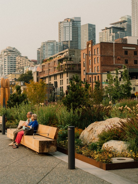 As people wander down pathways past groves of Oregon grape and Pacific Northwest alliums, boats cruise past the refreshed Elliott Bay seawall. Field Operations designed new panels with ribbed walls and shelves to mimic natural habitats. The result is a bustling ecosystem of algae, barnacles, mussels and kelp that attracts migrating salmon. “When the viaduct was here, the city was cut off from this massive asset,” says Corner. “They knew the bay was there but they didn’t pay any attention to it as a thing of scenic beauty.” Field Operations’ work shows how landscape architects can bring beauty to the fore, celebrating the city and supporting its people.
