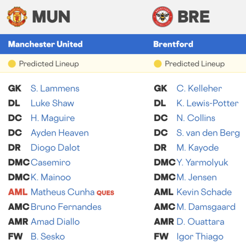 Manchester United vs Brentford Lineups & Injury News