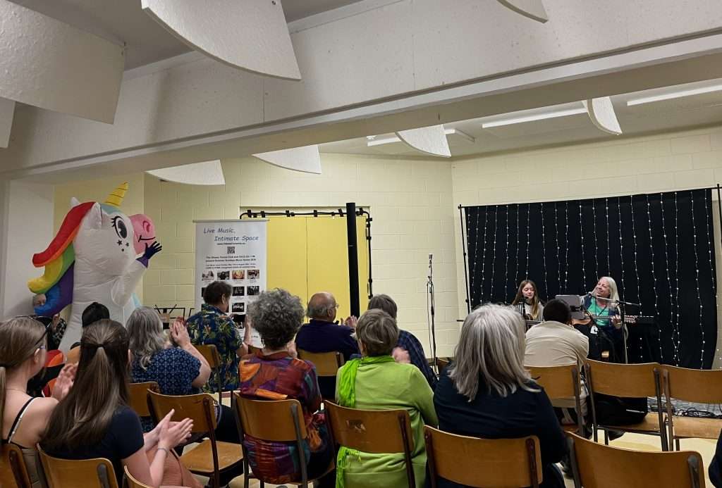 A volunteer named Laura and her student, Zoe, started things off with sing-along covers, including The Beatles’ “Octopus’s Garden,” complete with a kazoo solo.