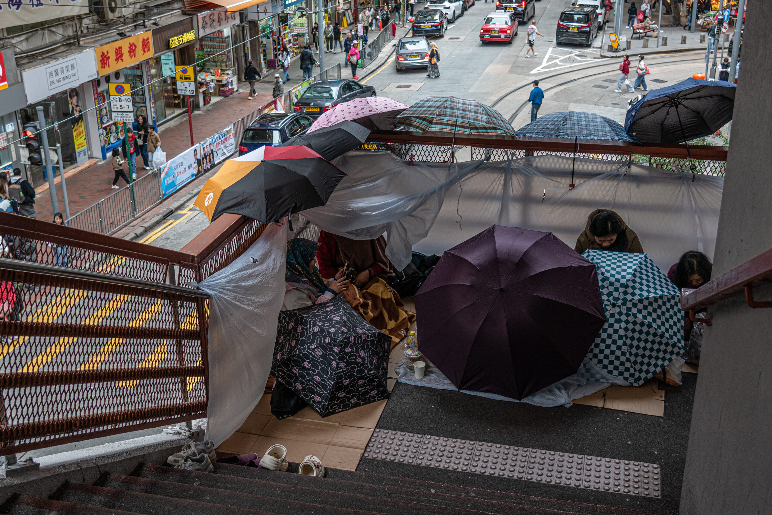 These migrant workers, almost entirely women and largely hailing from the Philippines and Indonesia, are the backbone of Hong Kong’s economy, taking on duties such as cooking, cleaning and childcare for six days a week. It’s tough but worthwhile work for those seeking to provide for their families back home. The monthly minimum wage of 4,990 Hong Kong dollars ($640) is higher than what most can make in their home countries. Yet the amount is still much lower than the minimum wage set for local workers, which was raised to 42.1 Hong Kong dollars ($5.36) an hour or about 6,736 Hong Kong dollars ($858.10) monthly for a five-day, 40-hour work week.