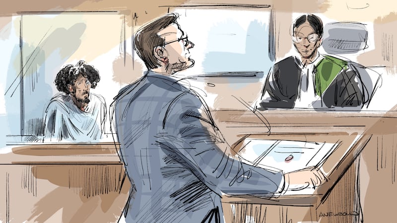 Bail hearing This court sketch shows the bail hearing for 18-year-old Jaiwin Kirubananthan.