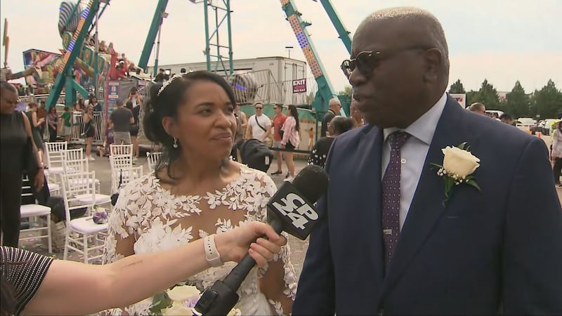 cne Newlyweds Jacqueline Q and Patrick M speak to CP24 at the CNE on Saturday August 23, 2025 (CP24 photo).