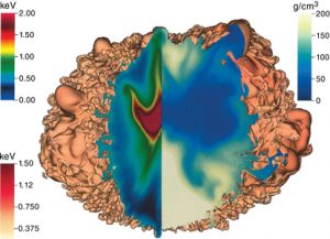 Featured Image Caption: Run on Livermore’s RZAdams supercomputer, a HYDRA simulation indicates density variations as the interior of the hohlraum is heated by laser energy. Credit: LLNL