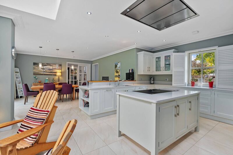 It’s a favoured spot to linger with a morning coffee. Another set of French doors extends the dining area onto the patio.