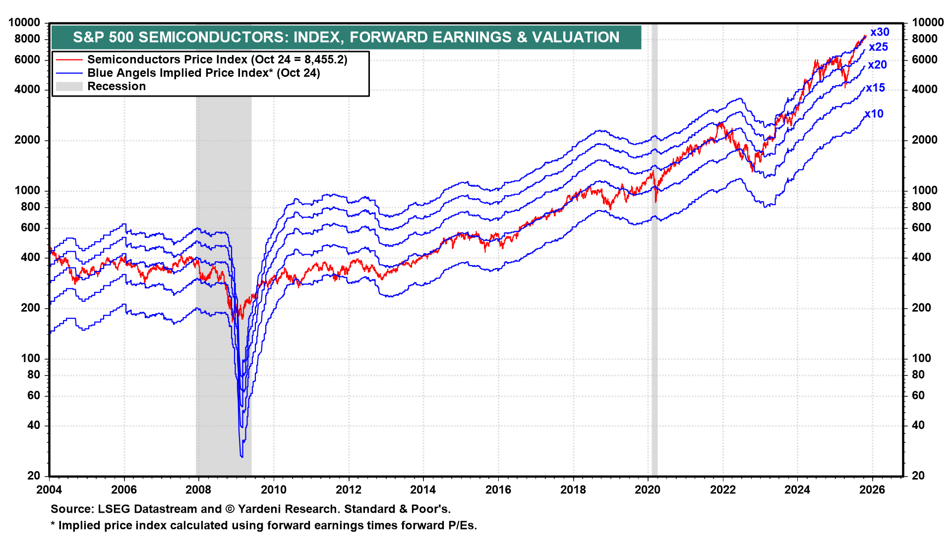 Semiconductor stocks were once viewed as very cyclical because their earnings were cyclical (chart). So the industry’s forward P/E tended to be around 15.0 during the period between the Great Financial Crisis and the Great Virus Crisis. Now it is at 30.0 as forward earnings has soared to record highs over the past couple of years.
