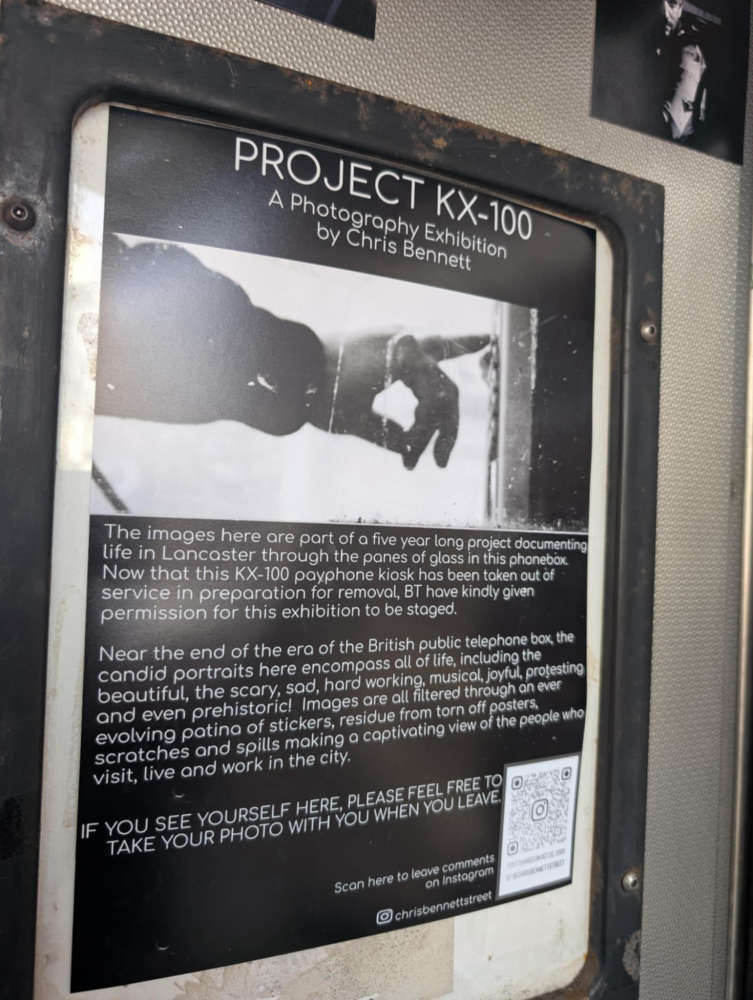A photographer’s exhibition of life on a Lancaster shopping street has gone on display inside a public phone box before it is removed for good.
