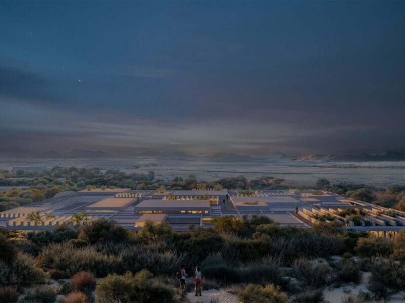The team’s proposal is inspired by the “geometric order of the cultivated fields and the organic, meandering flows of the wadi systems” that manifest at the site, Tatiana Bilbao ESTUDIO said.