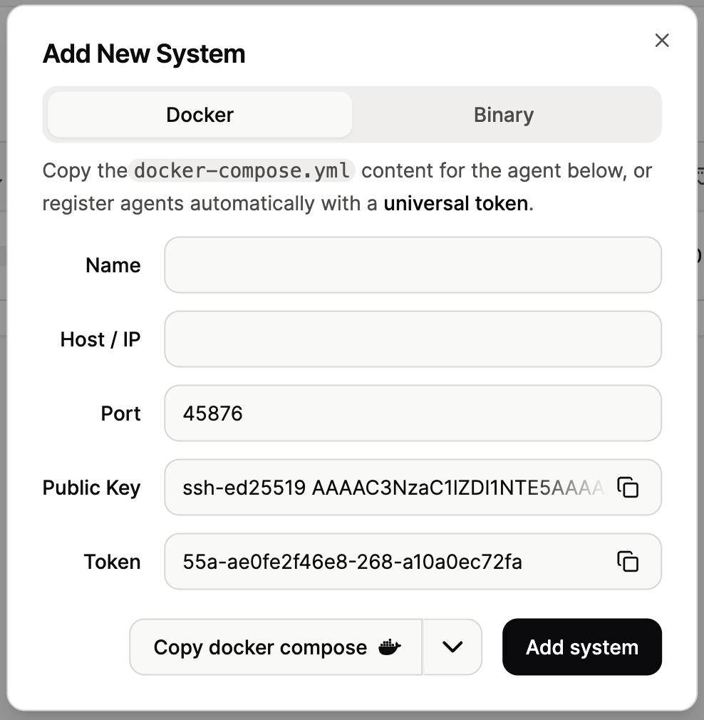 Next, click “Copy Docker compose,” which will copy the necessary contents for agent deployments.