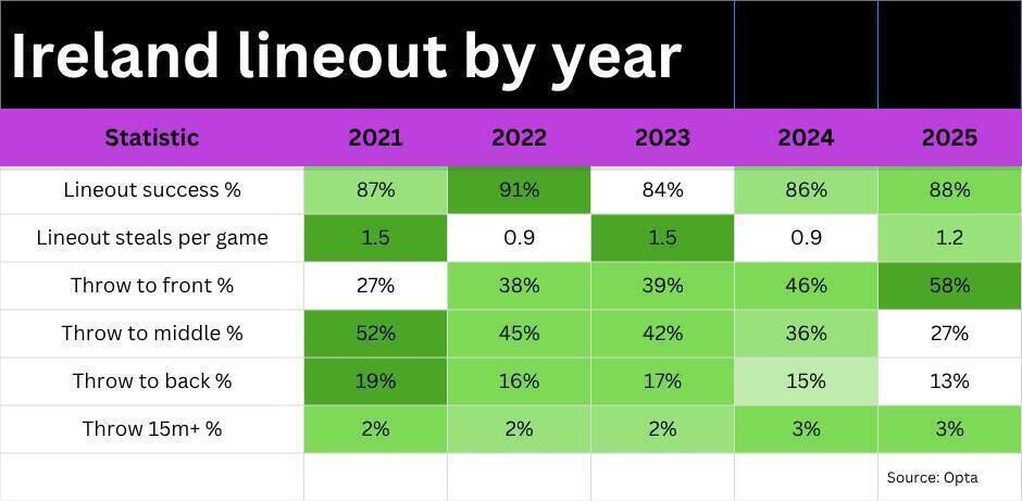 There was a time when England opted not to compete and hit the maul on the ground, such was the fear of Ireland’s power. That is no longer the case. From the very first throw against New Zealand, when Dan Sheehan’s feed sailed past before Ryan Baird had even been lifted, the tone was set.