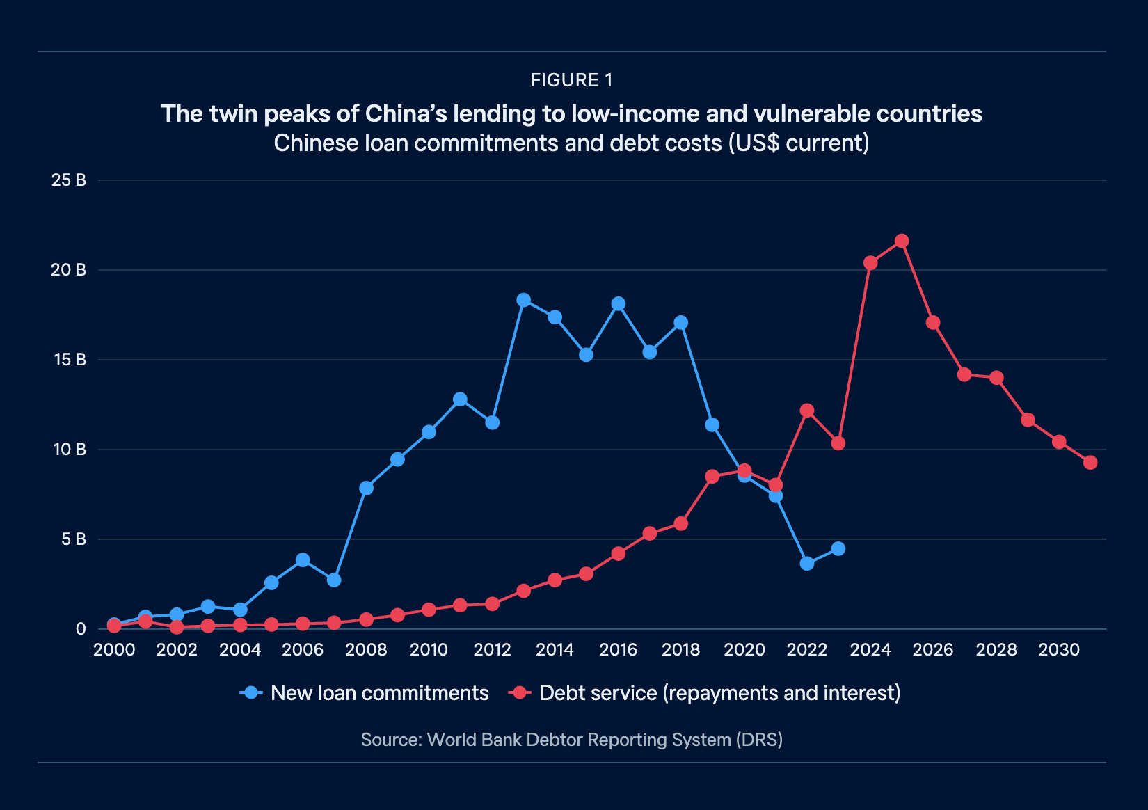 Earlier in the year the Lowy Institute published this striking graph showing the twin peaks of new loans and loan repayments from low-income and vulnerable countries.