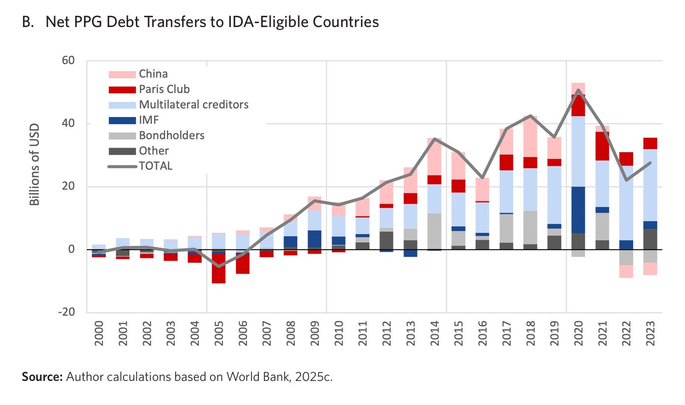 And since this occurred at the same time as new lending falls to low levels, the net result is that China has become a recipient of net payments from low-income countries rather than a source of development finance.