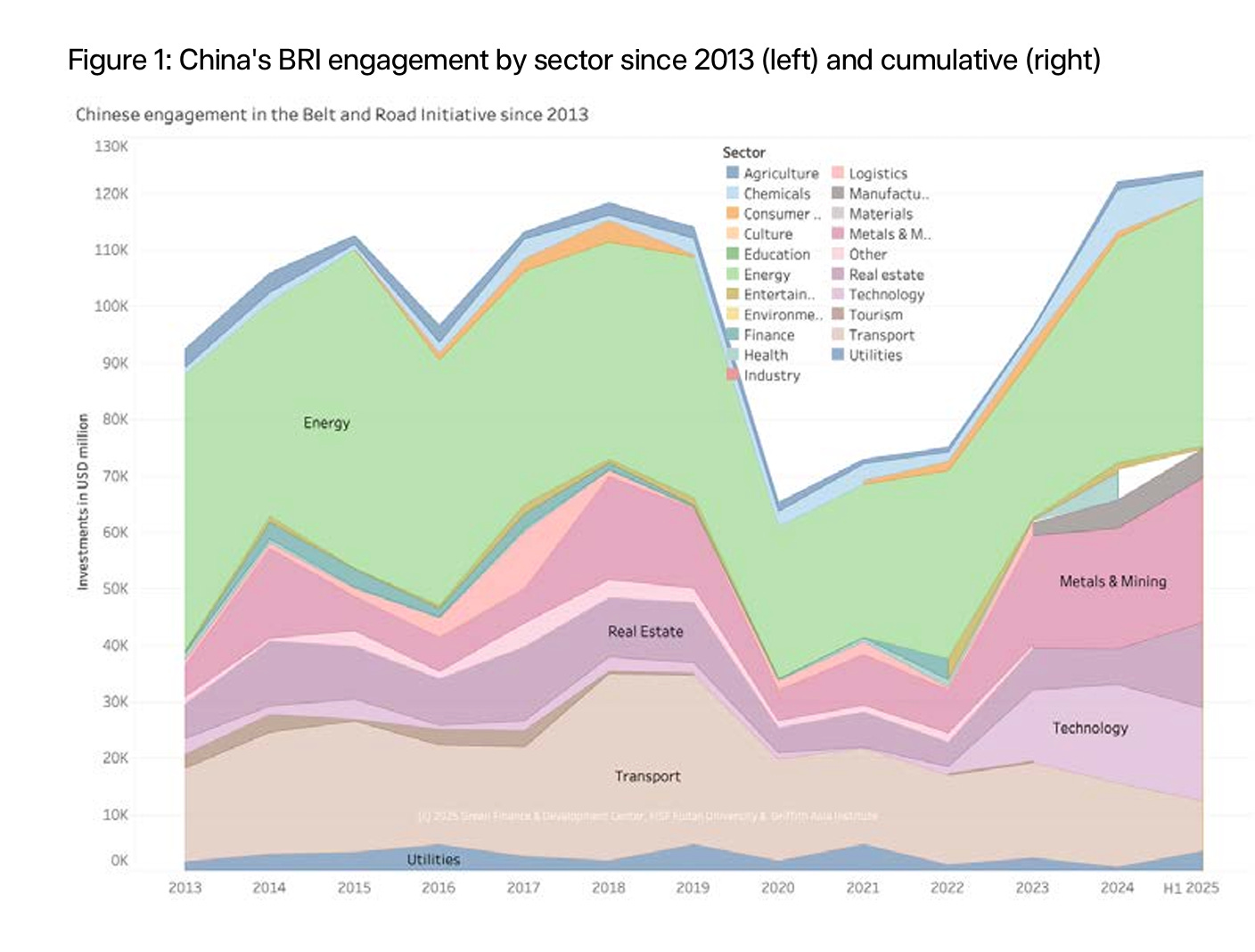 As reported by the Economist, Christoph Nedopil of Griffith University in Australia, working with the Green Finance and Development Centre at Fudan University in Shanghai has compiled remarkable data on the latest phase of BRI commitments, which show a major surge since 2022 and a new peak of commitments in H1 2025.