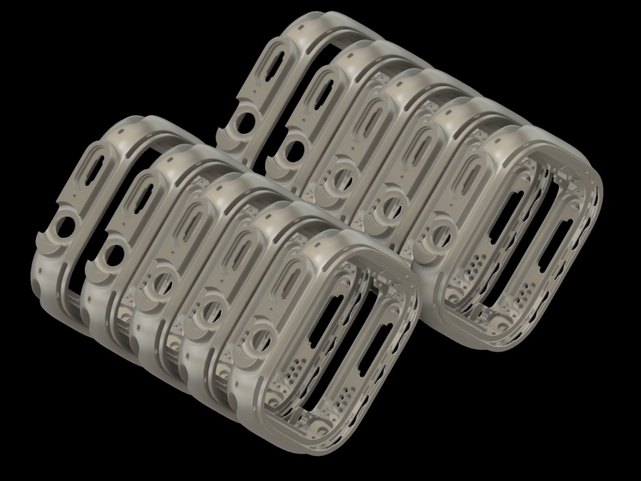 Cellular cases require a plastic-filled split to enable antenna functionality. The bonding between metal and plastic determines water resistance performance. 3D printing allowed Apple to print specific textures on the inner metal surface, dramatically improving how plastic bonds to titanium.