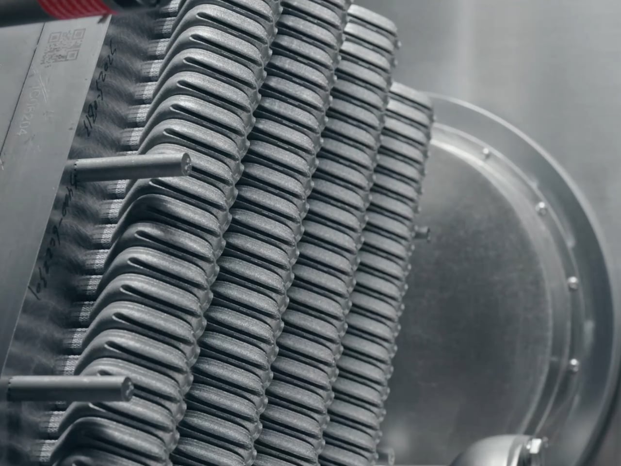 Each 3D printer houses a galvanometer with six lasers working simultaneously. Layer thickness must hit exactly 60 microns. A precision squeegee spreads powder at microscopic tolerances. Speed matters for scalability, but precision matters for design standards.