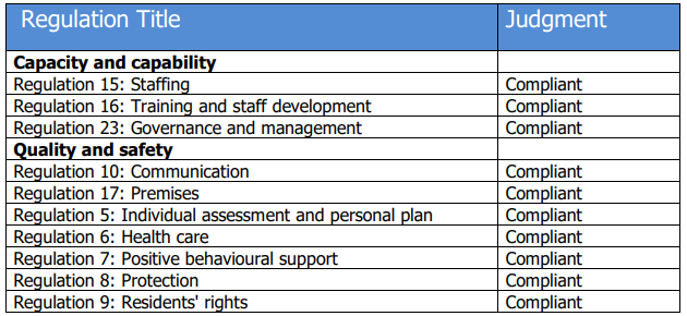 No non-compliances were recorded, with the report saying the centre offered a good service to residents and safeguarding was well managed, with residents telling the
