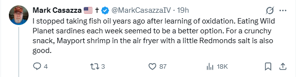 “I stopped taking fish oil years ago after learning of oxidation,” added @MarkCasazzaIV.