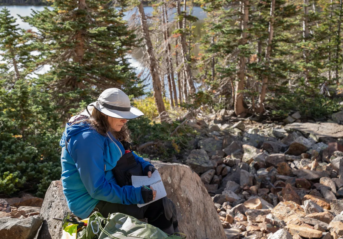 Chris Ray makes notes during a survey of pikas in Colorado’s Indian Peaks Wilderness. Credit: Gabe Allen/INSTAAR