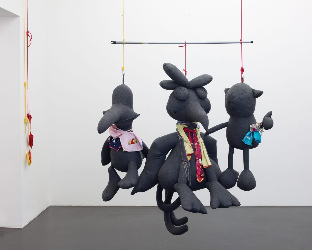 Recent contemporary art, it seems, is capitalising on the versatility of the cartoon to politically undermine the institution (be it art, political, or otherwise). Take Cosima von Bonin’s current show at London’s Raven Row, where plushie toys and inscriptions of New Yorker cartoons onto canvas carry a Polkian ‘fuck-you’ to art speak, minimalism and the German art establishment. Works like Thrown Out of Drama School echo the tongue-in-cheek tone of Kokopeli’s Literature and Painting Playset, which sees two South-Park plushies dressed respectively as a preaching puritan and a discombobulated, struggling artist. Similarly, early 2010’s postinternet art like Paul McCarthy’s fairytale series (White Snow Dwarf Bashful, 2010) and Jordan Wolfson’s Coloured Sculpture (2016) have a post-reccession cynicnism that sees the perversion of two beloved D*sney cartoons. There is, again, something Rabelaisian about the male artist creating full-bodied figurative sculpture of childhood cartoons dripped-out with dildos.
