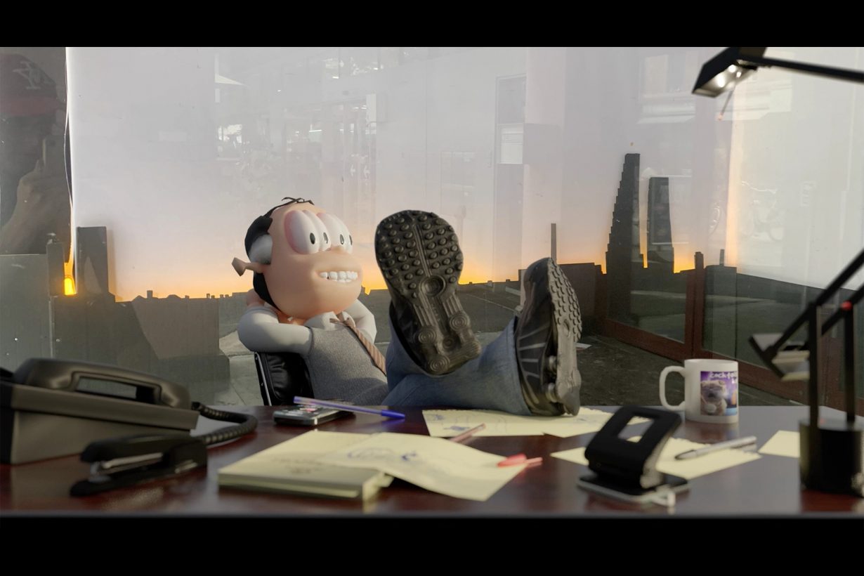 Paul Fritz & Virginie Sistek, My wife reads novels. I haven‘t got the time, 2024, video still, 3D-animated video-loop. Courtesy the artists