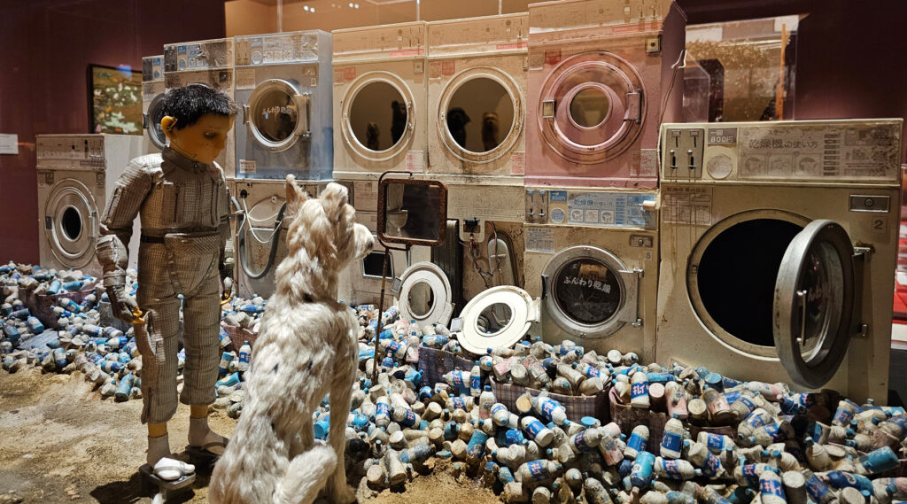 Other highlights include the vending machines from Asteroid City, the fur coat, behind a protective glass case, worn by Gwyneth Paltrow in The Royal Tenenbaums, and the original stop-motion puppets from the Fantastic Mr Fox and Isle of Dogs.