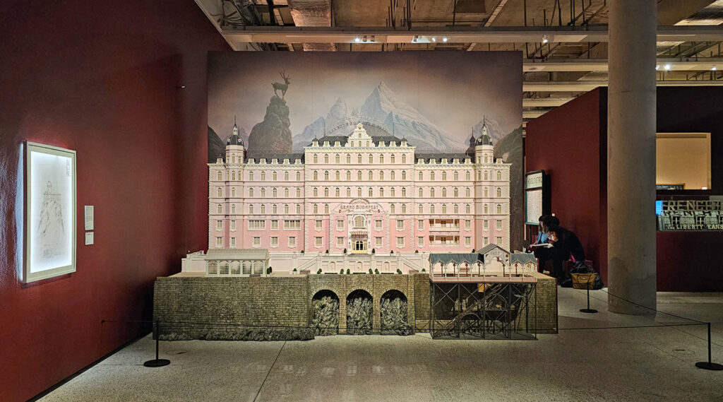 A major highlight is the monumental 3-metre-wide candy-pink model of the Grand Budapest Hotel, which is one of the largest and most recognisable items in the exhibition.