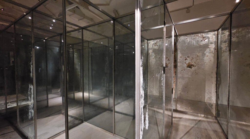 A warning sign next to a mirrored labyrinth that “visitors enter and engage with the installation at their own risk” is more of an invitation to explore than a warning. And it’s good fun to wander through.