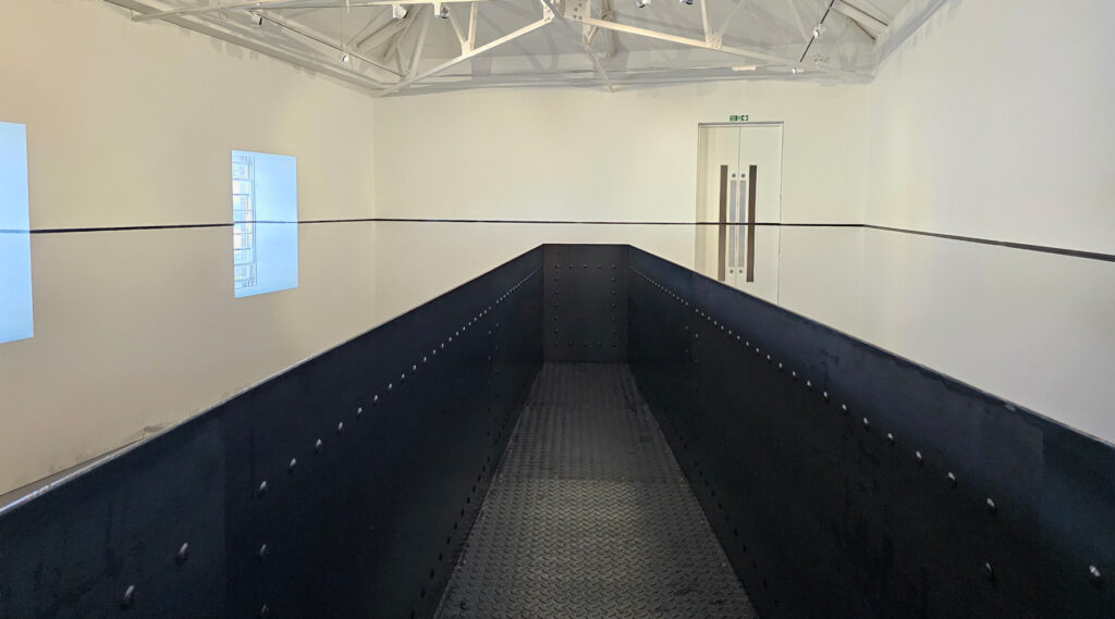 Upstairs, almost directly above this is Richard Wilson’s iconic 20:50, a huge room filled with raw unrefined oil. The mirrored effect is almost incidental to the smell rising from the oil, which transforms the space from contemplation into one almost of revulsion.