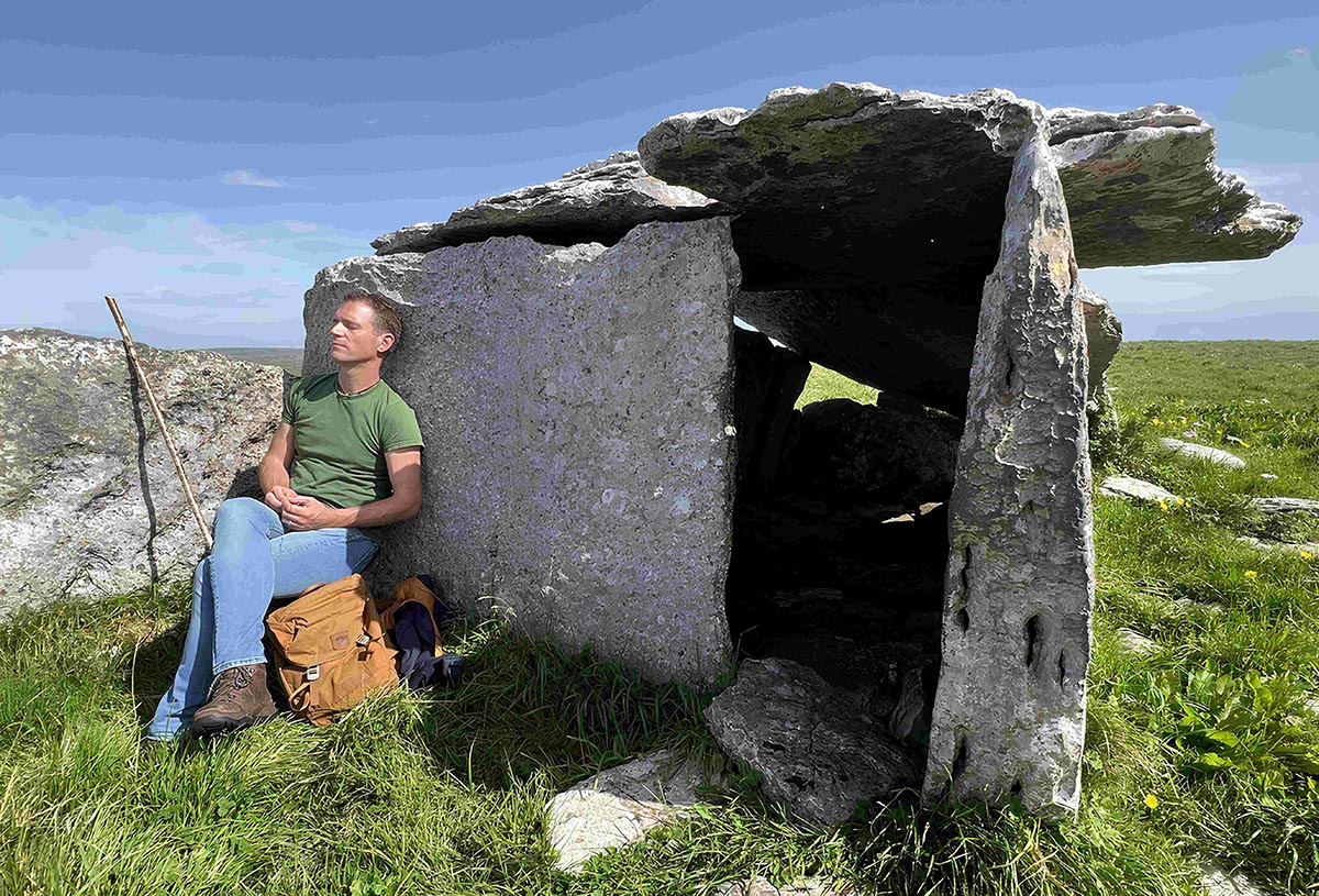 Oileán Glas, Fásach Bán, is a year-long exploration of the Burren with naturalist Eoin camping rough and trekking its stony hills to uncover the region’s hidden wild worlds. Along the way, Eoin finds the tombs of the very first settlers who cleared the ancient forests and created the Burren as we know it today.