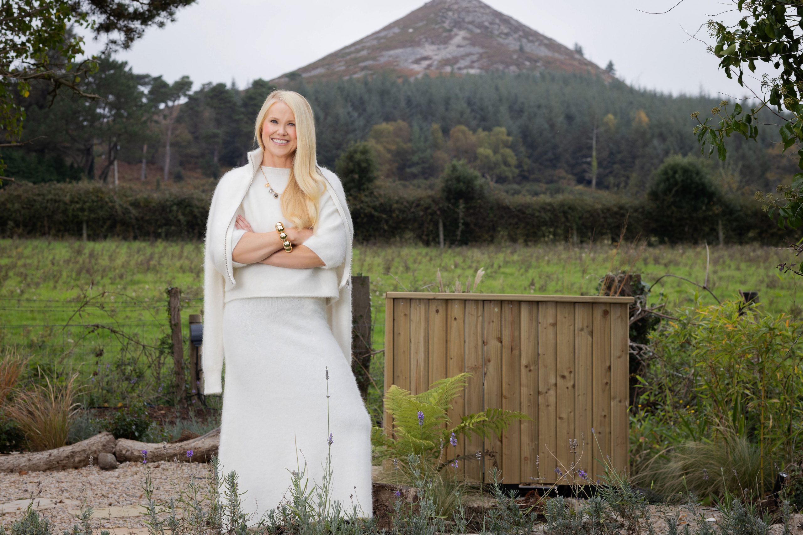 After a morning spent hanging in her kitchen, eating her berry bark, nosing through her cookbooks (Darina Allen, Yotam Ottolenghi and Nigel Slater to name a few) and admiring her new sauna and plunge pool, the latter built by her husband Robbie, we sit and talk about