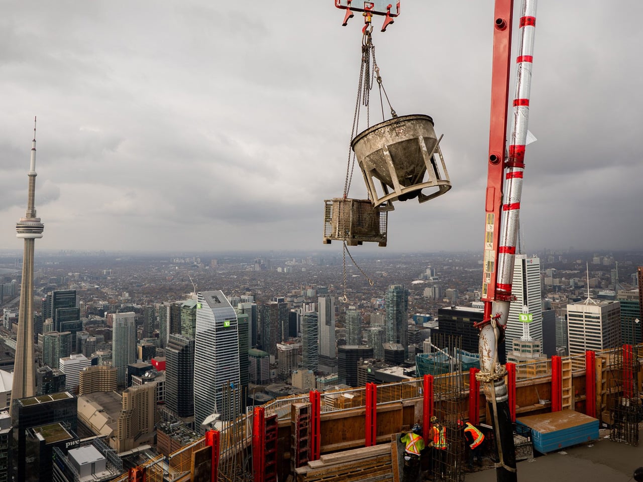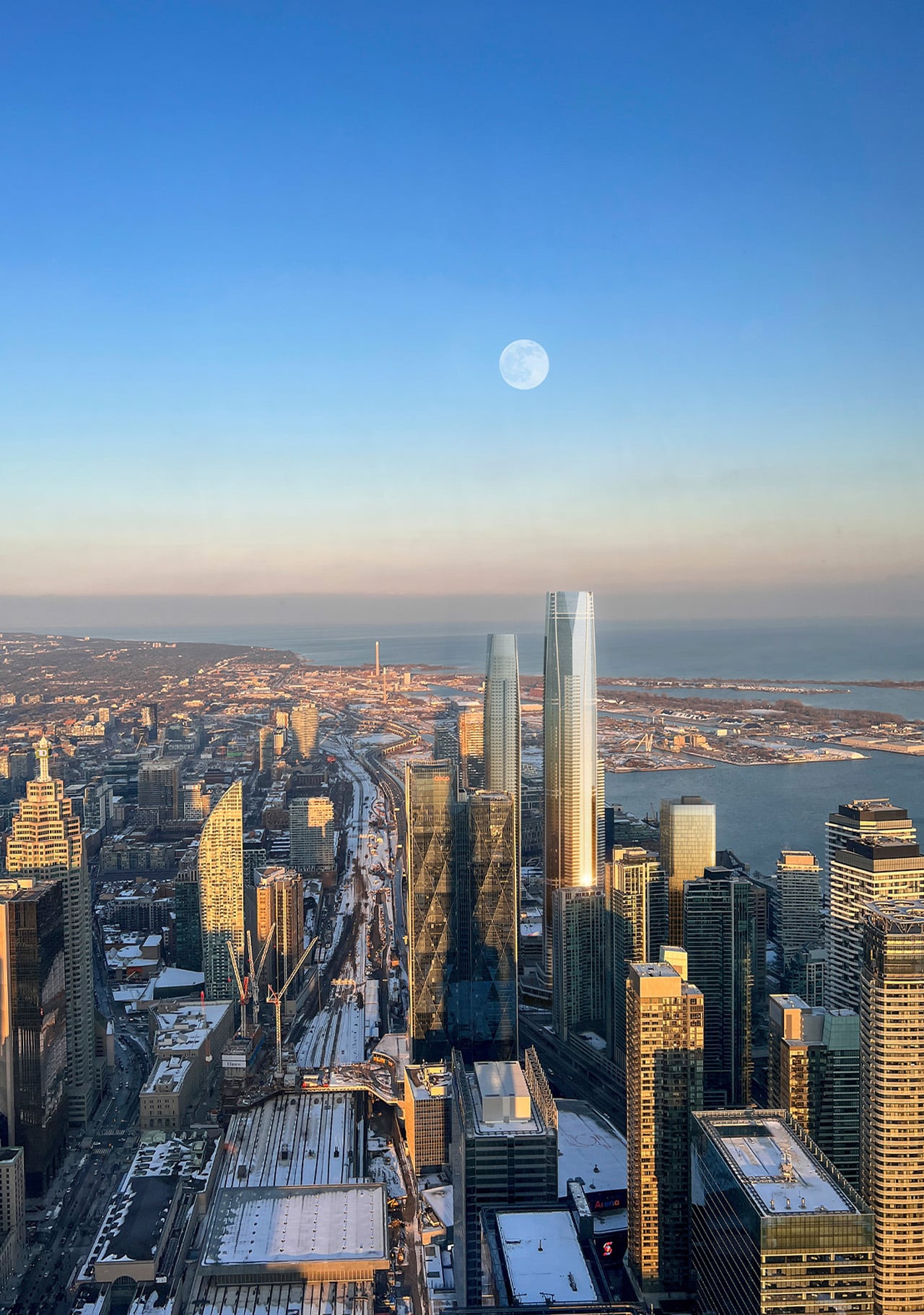 The project’s ambition grew during development. Originally planned at 95 storeys, a variance request in March 2025 added eleven floors, pushing the design into record-breaking territory. Construction has progressed steadily since groundwork began, with the exterior cladding now substantially complete on the lower sections. The tower rises from the Pinnacle One Yonge development, which transformed the former Toronto Star site into a six-building complex that’s reshaping the city’s waterfront.